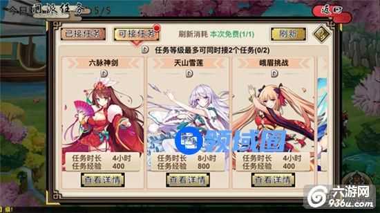 5、完成任务可以提升自己的门派等级,门派等级越高,同时接受的任务数量越多,刷新出的任务等级越高!
