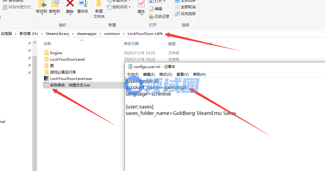 双击打开游戏目录下的“名称修改,快捷方式.bat”,找到“account_name=gaimingzi”,把“gaimingzi”改成自己想要的名字,保存。