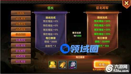 军事城池 进驻获得:属性加成 开发获得:国家币