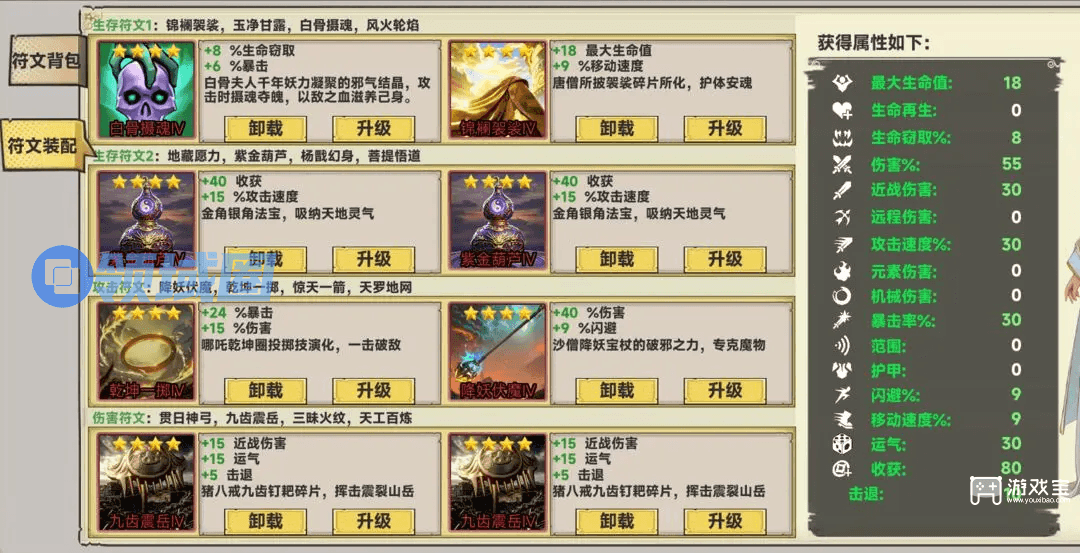 所有武器升4级,暴击55+(4级轮刃自带暴击45暴击),吸血20以上,生命推荐100+,近战伤害推荐100+,伤害%推荐200+,攻速推荐100+,穿透属性至少+1,护甲15+,闪避推荐30+,运气:推荐300+,收获属性推荐300+。