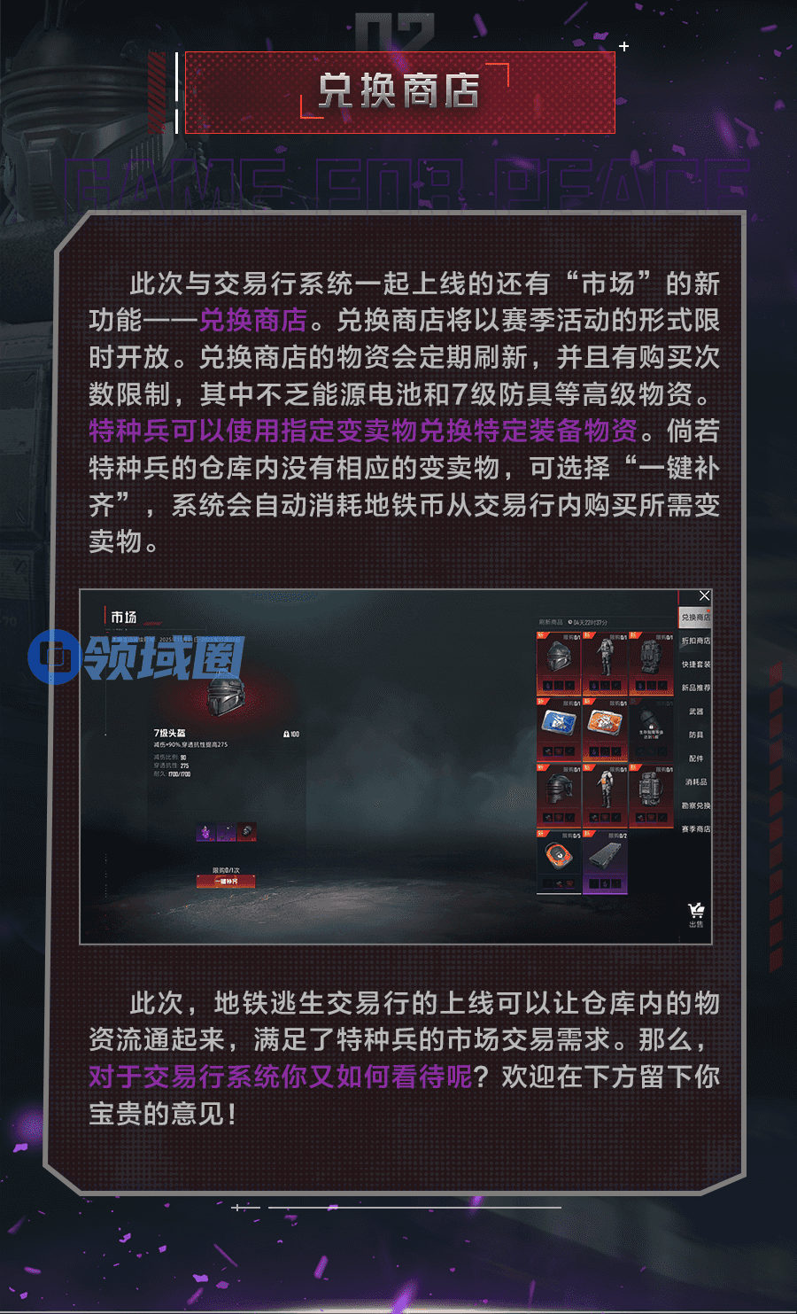 以上就是领域圈游戏为大家带来的和平精英地铁逃生交易行是什么解答,大家都了解了吗?还想要了解更多的内容那就请继续关注领域圈游戏吧。