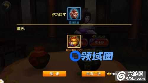 每48小时一次免费高级抽卡(免费次数使用完后可消耗元宝购买高级酒)