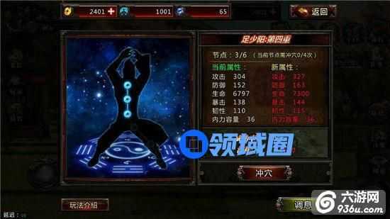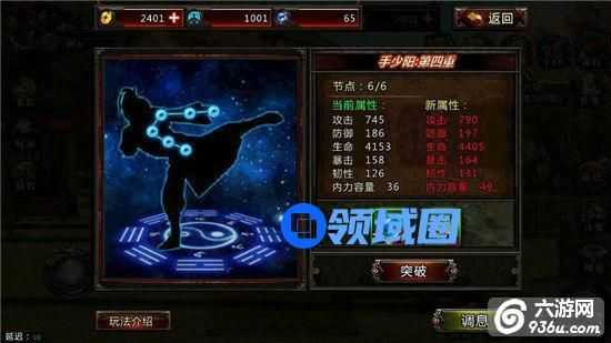 介绍了这么多,那前期到底怎样升级经脉才合理?我个人的建议是,经脉前期(五十级前)全部升级到四重。四重以后再慢慢攒内力突破。为什么这样做呢,看图,前期,全部升到四重的话,战力提升的已经很多了,而此时经脉突破需要的内力量越来越大,不如攒着内力升级五十级开的全新经脉。如果你现在的内力真的很多,也不妨升级一下经脉。五十级前推荐主要升级手少阳经脉。如图所示,手少阳加的战力是最多的。五十级后可以主升手少阳,足少阴经脉。(五十级后的任督二脉,因为本次测试时间较短,未能到达六十级打通任督二脉。所以不能为大家分享打通任督二脉的绝世高手的心得啦)。经脉突破是有成功率的,要是一直点着全部失败的话。可以试着换另一条经脉突破,成功了再切换回来。要是都不成功的话,建议重登游戏。