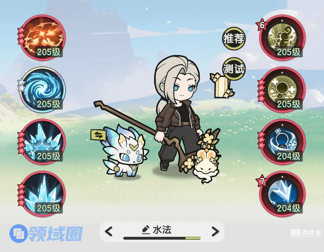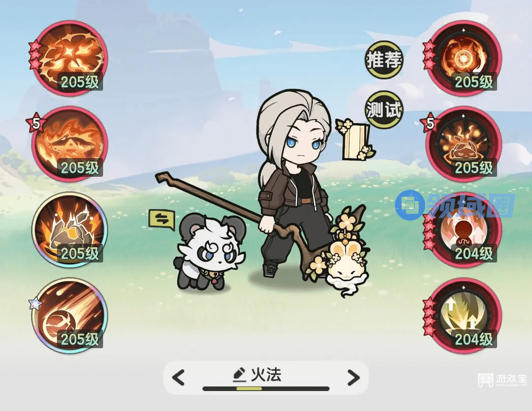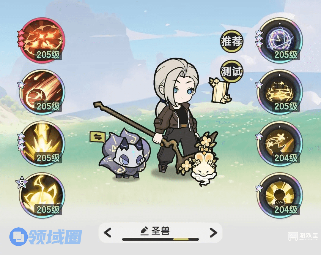 ①:匹配的圣兽一般没人带草人,所以这边二号位用陨石,有人带草人的话还是雷弓伤害更高,不过也看技能品质,不能差太多,匹配无脑用陨石就行,会心率不够光亲和换魔力。