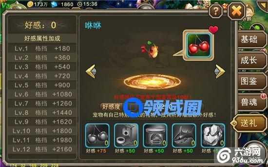 那么,究竟要如何提供宠物战力呢?目前宠物开放了功能:图鉴、成长、送礼。