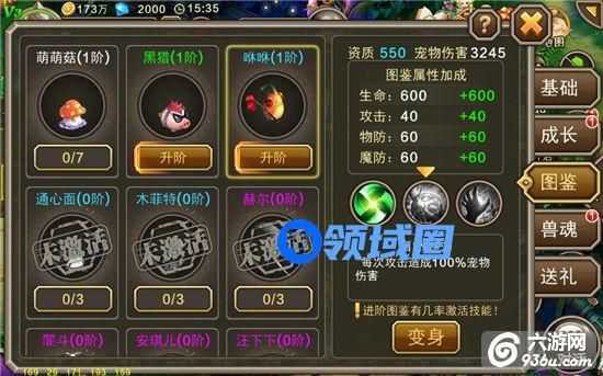 每只宠物都需要搜集足够的对应魂片才能进行激活,然后才能令其出战。当某只宠物已经激活时,剩余的魂片便可以用来进阶图鉴等级,从而获得属性提升。更重要的是,虽然每只宠物最多都可以使用三个技能,但刚激活时,宠物都还只会使用第一个技能噢。而在每次提升图鉴等级的时候,都有机会习得新的技能!