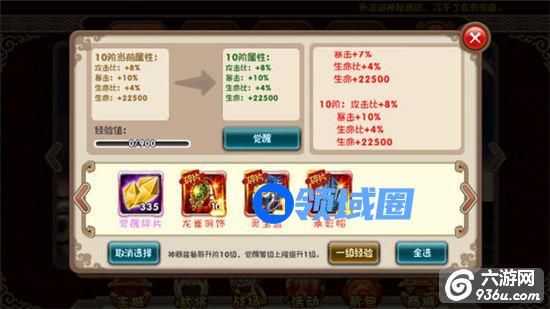 神器——朱雀羽扇,觉醒加技能释放,建议觉醒到11阶,10阶升至11阶加1%技能释放,觉醒至20阶技能释放率+6%