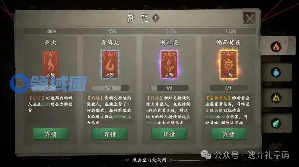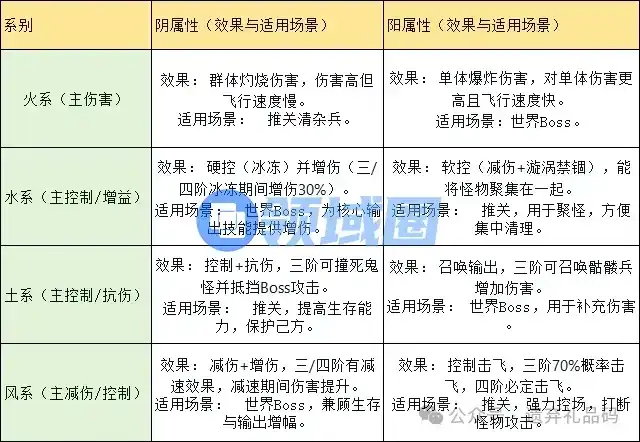 符咒分4系:火、水、土、风!火系纯走伤害流,水/土/风主打控制+增益,千万别搞反了;