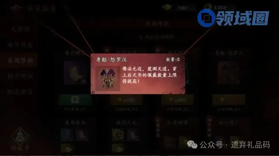 初始只能带5本天书,想多带?去黄泉集市每周限购「身躯·怒罗汉」,解锁/升级它就能加携带数量,这玩意刚需!