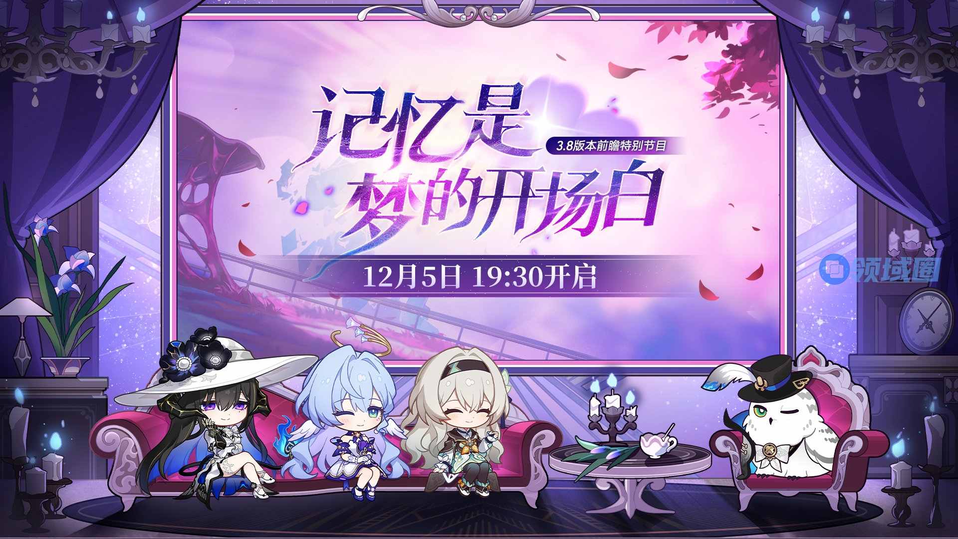 《崩坏:星穹铁道》3.8版本「记忆是梦的开场白」前瞻特别节目将于12月5日19:30正式播出。