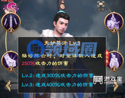 难度:较难(杨修武将死亡会有自爆效果,容易减员导致无法三星通关)