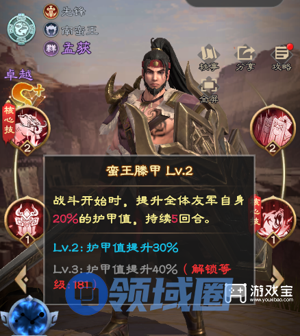2、上孟获,大乔,玄女武将提供护甲和免伤增加整体阵容坦度。