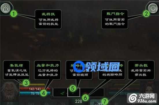 战斗操控由3大部分组成,技能指令,武将属性和战场属性。
