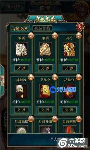 每日你所做的捐献,可以积攒,个人贡献度可以在联盟中兑换游戏道具。