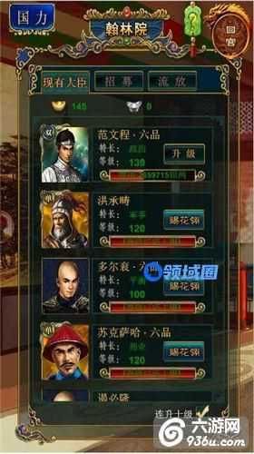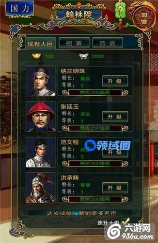 每当玩到一个进度时,都可以进行大臣的招募,大臣升级是提升国力的最快最基本的方式。