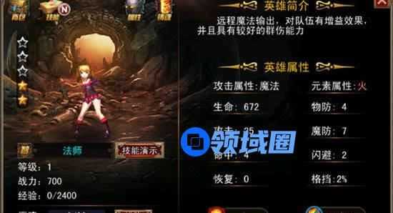战斗技巧:法师属于远程魔法攻击,同时自身有提高队伍伤害加成技能,战斗时,先使用烈焰增幅,提高整体队伍成员攻击加成,然后火雨火鸟齐放,别看小萝莉可爱,打起架来伤害不容小觑!
