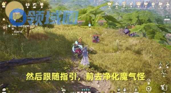 按照指引前往指定地点,使用协战能力净化魔气怪