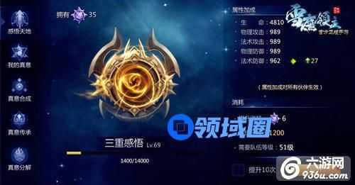 真意系统开启之后,《雪鹰领主》手游玩家可通过感悟天地,也就是消耗领悟点,来提升生命值、物理攻击、法术攻击、物理防御、法术防御等方面的属性加成,且此加成属性对所有伙伴都生效。领悟点可通过天穹牢狱、云雾杀阵等方式获取。