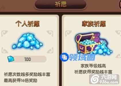 总结:第二种玩法个人祈愿不建议点,家族祈愿的如果有钱两种都建议点,相当于500钻买2个5级宝石