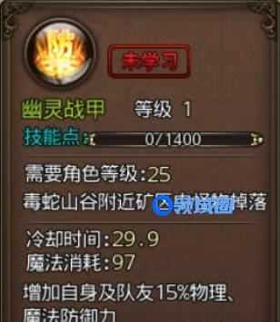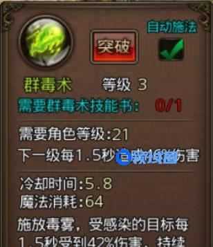 需要指出的是,群毒术和幽灵战甲一个是群攻一个是群防,辅助型道士这两个技能修炼好了可以成为团队中的英雄。