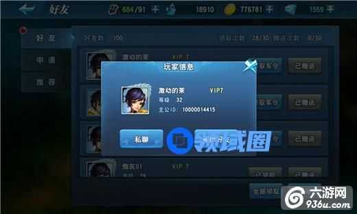 此标签页显示目前已经成为玩家好友的其他玩家的基本信息,包括:好友头像、好友名字、好友等级等。