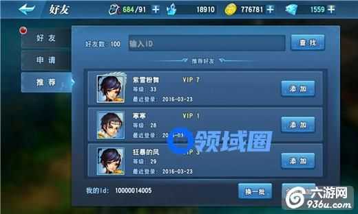 这一栏标签页主要进行指定好友的添加和系统推荐好友的添加。输入玩家的ID号可以添加指定的好友。