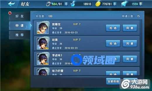 这一栏标签页显示所有向你提交好友申请的玩家信息及申请好友的数量,你可以选择同意或者拒绝,也可点击下方全部同意、全部拒绝按钮,一键进行操作。