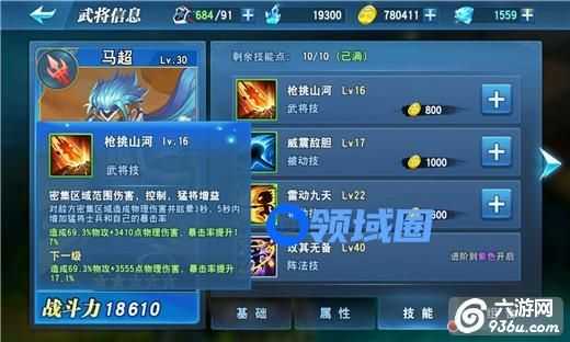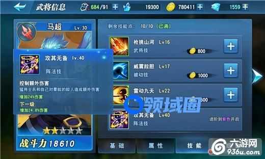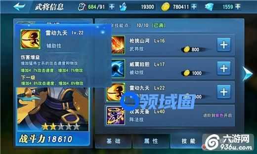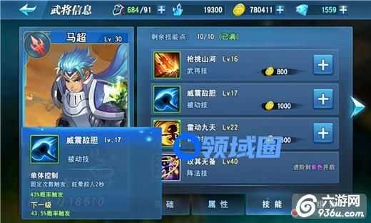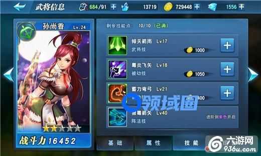 不同类型的技能随武将品质提升依次解锁,白色品质的武将只可使用主动技,紫色品质的武将可使用所有类型的技能。每一个技能有各自的等级,技能的等级越高,效果越强力。