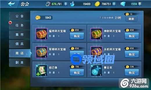 成立公会之后,可以在公会商店购买到武将碎片、武将升阶材料,和经验丹等消耗品。在公会商店中购买这些东西,全部可以使用公会币来购买。