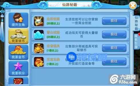 游戏内左上角有个【引导】图标,打开后,可发现有很多的秘籍,其中可以看到提升主角、我要银币、我要金币、我要积分、我要鲜花、提升宠物几个选项。