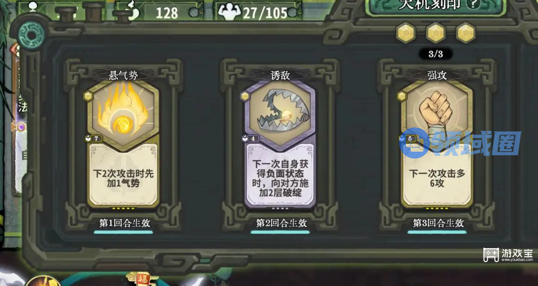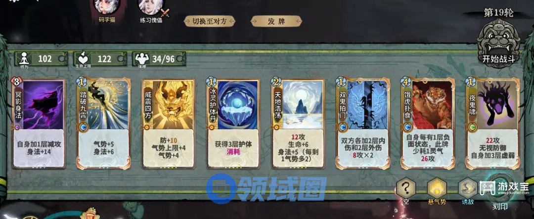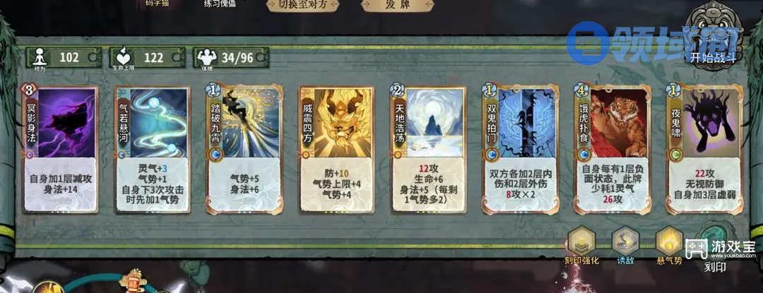 通用刻印基本就是老三样,这里特别说明一下捆仙刻印,因为锻玄宗再动靠的是身法,而捆仙刻印不会消耗身法,效果完了之后接着靠身法再动,所以捆仙在打外战的情况下比较好用,并且捆仙可以做到存身法,让多一张牌吃到诱敌的效果。