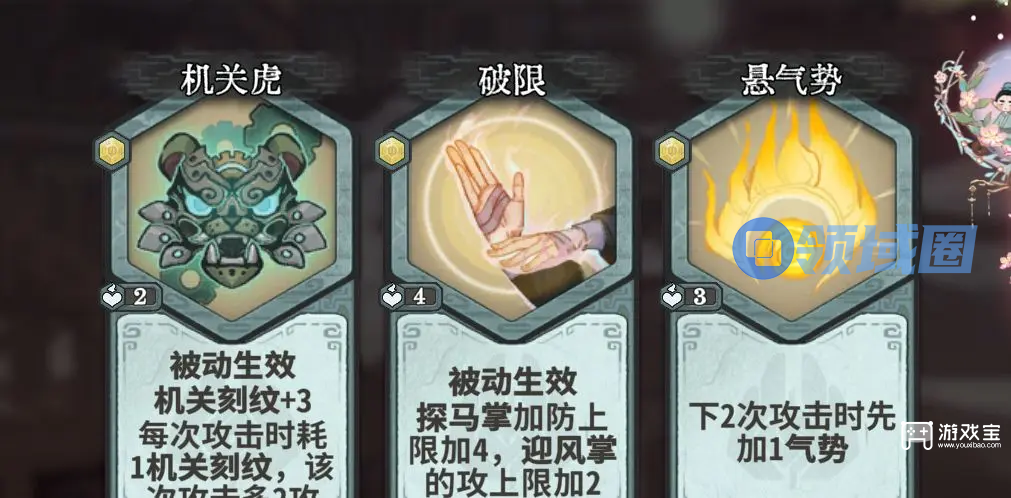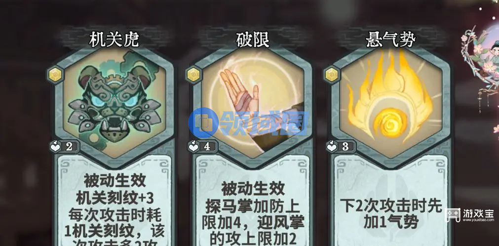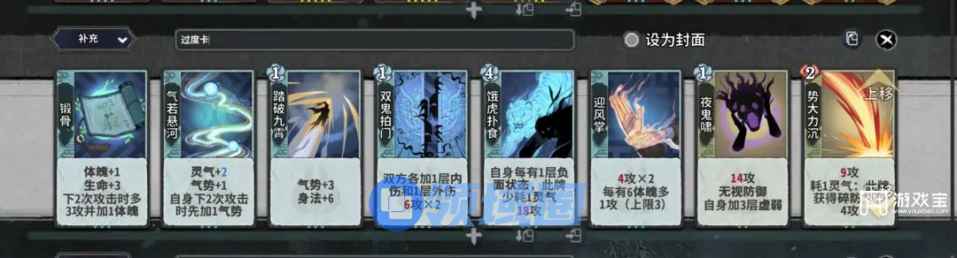 过度卡,基本都有下位,前面没D到双鬼可以用荷重来触发诱敌,比较关键的气若,前面可以用给灵气的丹来勉强代替。