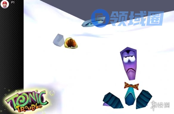《麻烦大了》则于1999年8月在N64平台首发,比《雷曼2》早两个月。这是一款3D平台游戏,玩家操控一个名叫埃德的紫色外星人。他在清洁飞船时,意外地从舱门吐出一滩不明液体,液体坠落后导致地球发生变异。这种神秘液体污染了地球的水源,游戏的主要反派格罗格在饮用受污染的水并获得超能力后,开始了他的征服统治。