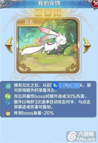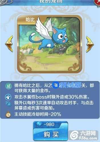 宠物的增益属性是巨大的,商店有四种宠物,哈比,巴达兽,哈罗,丘比,都是很有用的,属性自看,不介绍了,如果非要按性价比来排的话:丘比>哈罗>巴达兽≈哈比。小资玩家可以参照这个选择性买几个宠物,宠物被动属性是叠加的,不出战属性也存在,平民建议至少攒十几天钻石买个丘比。