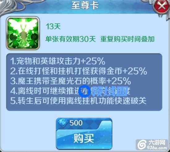 虽然有些萌新一看属性好像没什么,还要500钻,但里面的转生后可使用离线挂机快速破关这属性很有用,不然每次转生完后都要自己在线慢慢打到之前的关卡,要累死,尤其是几千关后。而且确实不贵,游戏送的钻石攒个五六天就有。