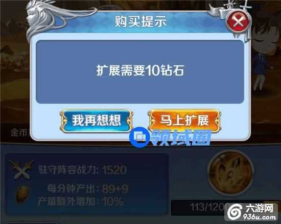 一次10钻扩20000点上限,如果不扩几次,资源很容易就满了,会造成浪费,建议前期扩到60000或80000上限,后面随着驻守卡牌战力越高,再时不时扩展。