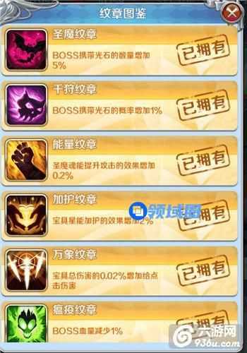 2、优先升一些有上限等级的纹章并升满,无限等级的可以先升到25级或者50级,等所有有限等级升满再去升。