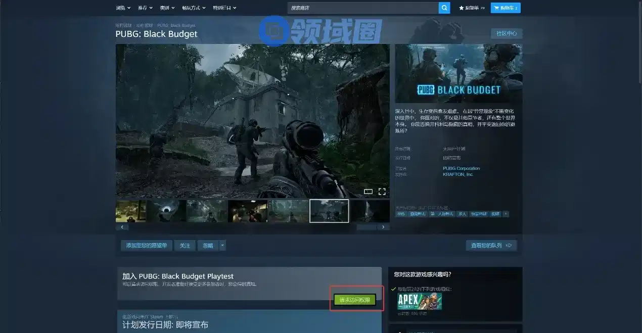 在进入steam商店页面后,点击请求访问权限