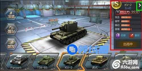 以kv-2为例,红色框标红的为坦克的基本属性,分别为攻击,装甲,移动,装填和2个被动属性,防御和重创。这几项都是所有指挥官能理解的,此次的重点不是这个,而是绿色框所标示的部分。点击此处,便可打开新世界了~(~ ̄▽ ̄)~