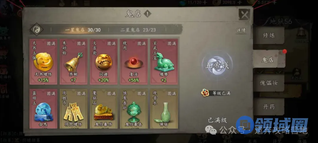 铜钱:先点满「攻击距离」(性价比王),再逛鬼店抽奖