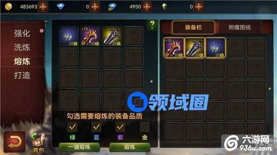 有多余的装备怎么办?升级后不再需要低级装备了怎么办?打副本掉落的垃圾装备太占包裹怎么办?那么熔炼绝对是个好去处,一键勾选不需要的装备,再一键熔炼变废为宝,可获得用于打造装备的熔炼值,还有概率重铸出更高品质的装备,而已经强化的装备在熔炼时还会100%返还强化石和金币呢(真是一点都不能浪费)!