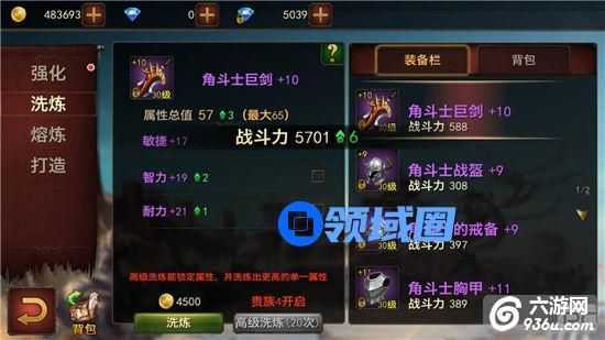 接下来看看洗练,什么叫洗练呢?在《永恒》中,每件装备除了基础属性之外,还有三个随机的附加属性,我们可以看到属性总值有一个最大值,越接近这个值代表附加给职业的战斗力越强,如果一开始的属性值太低,属性也不太令你满意,不用担心!我们只要花点金币,就可以通过洗练来改变属性和提升战斗力啦。