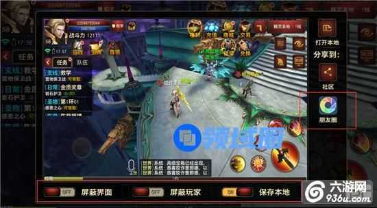2、社区系统可以分享到朋友圈中,同时为了截图美观可以屏蔽玩家、屏蔽界面