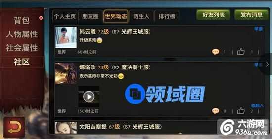 6、世界动态中可以看到全服玩家的截图和评论等内容,同时可以进行点赞和回复等。