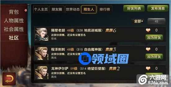 7、陌生人则是随机一批玩家,右上角可看到刷新的倒计时,让玩家之间相互添加好友。