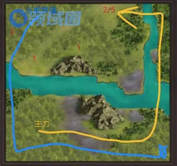 注意,主力距离第2波敌军的距离,一定要比长蛇阵遛弯队距离第2波敌军的距离要远。主力奔向目标位置的时间可以靠后,所以主力行动节奏需要参考长蛇阵遛弯队的节奏。