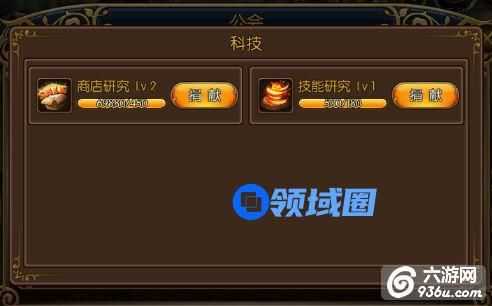 可以通过捐献到道具来研究公会商店和公会技能,捐献道具可以获得贡献值。