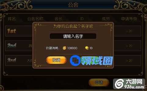 若想自己管理一个公会,则点击“创建”。输入一个自己的公会名称,然后花费一定的金币和钻石即可建立自己的公会了。