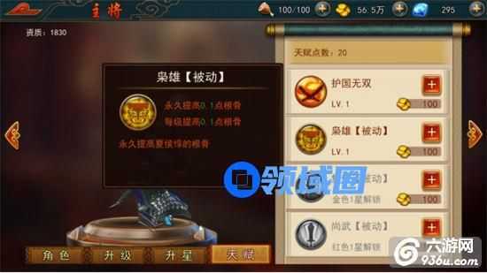 在玩家战力不足,无法通关时,玩家这时非常需要通过提升主将属性来提升自己战力。打开主将属性的页面我们可以看到,玩家可以通过等级提升、资质提升、星级和天赋等途径来提升主将属性。主将等级不同战力不同,同一主将每次升级都会有属性成长,随着等级提升,主将积累的属性越多。资质越高属性越高,同一主将每次升级带来的属性提升越高。但不同主将资质不同,且资质不可改变,所以越高资质的主将,属性成长空间越大哦!偷偷告诉大家,15位主将中浑身是胆的赵子龙资质最高哦!