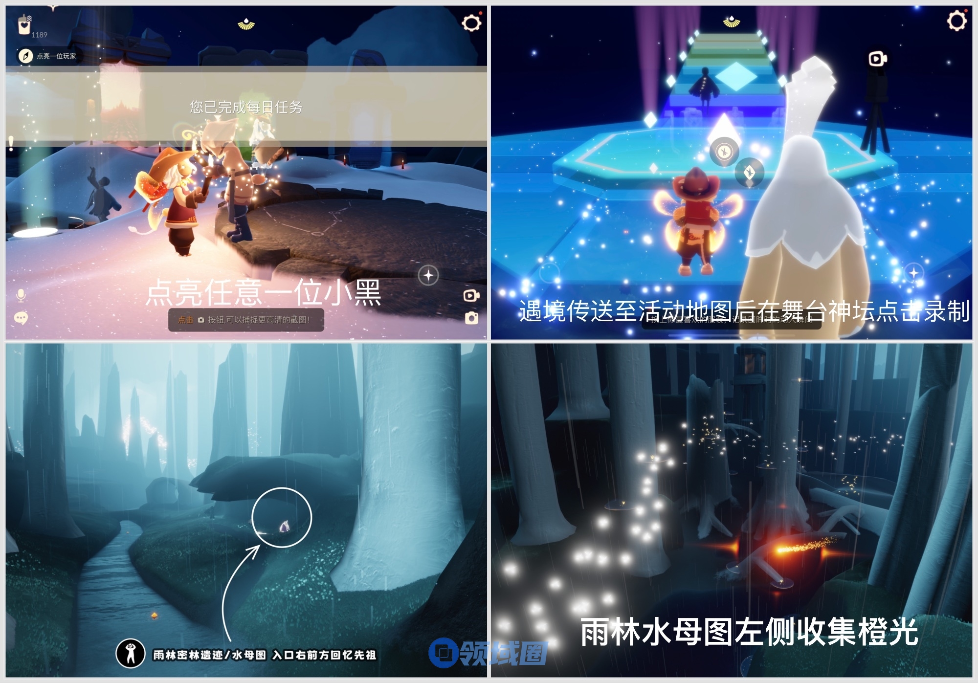 任务①收集橙色光芒:进入雨林水母图左侧收集橙色光芒即可完成!